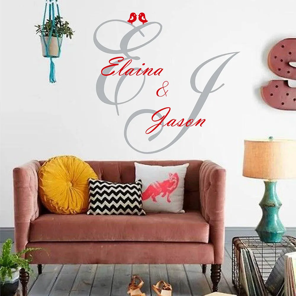 Custom Couple Monogram Names Decal Couple Personalized Name Wall Sticker For Bedroom Wedding Decor