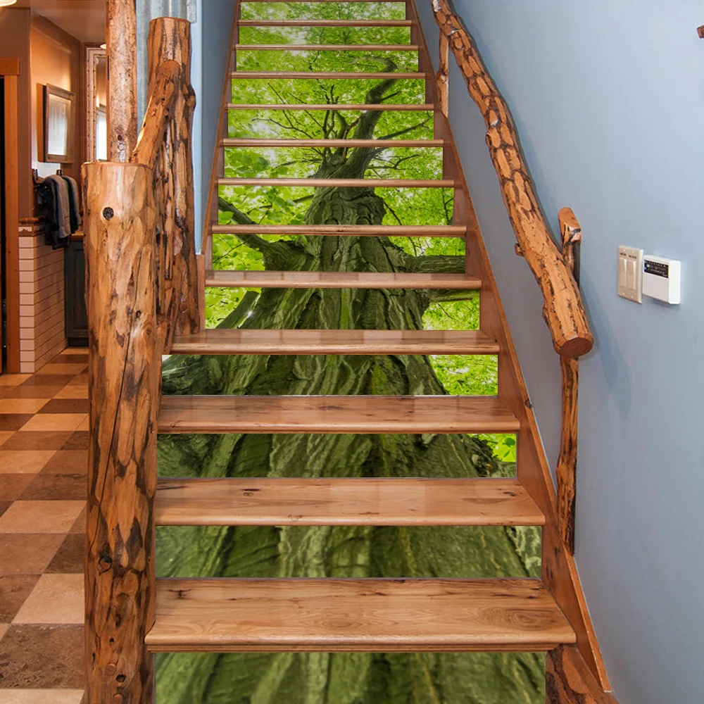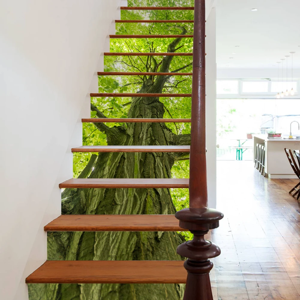 ORIGINAL 13pcs/set Tree Nature 3D Stair Stickers Waterproof Self-adhesive Removable Wall Floor PVC Stickers